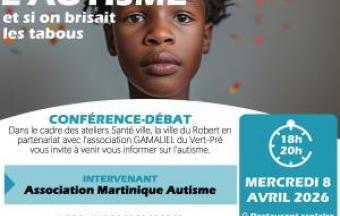 Dans le cadre des Ateliers Santé Ville, la ville du Robert en partenariat avec l'association Gamaliel du Vert-Pré vous invite à venir vous informer sur l'autisme