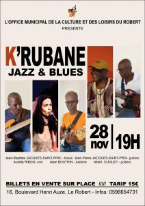 L'Office Municipal de la Culture et des Loisirs du Robert présente K'RUBANE JAZZ & BLUES le vendredi 28 novembre 2025 à 19h à l'OMCLR;