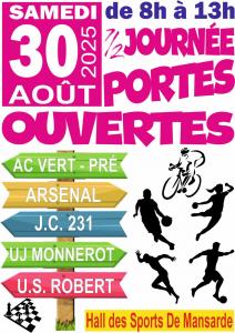 Ne manquez pas la journée portes ouvertes au hall des sports de Mansarde le Samedi 30 août 2025 de 8h à 13h.
