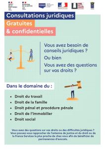 Vous avez besoin de conseils juridiques ? Vous avez des questions sur vos droits ? La Maison France Services organise une permanence avec ces différents partenaires afin de répondre à vos questions :