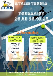 L'association Tennis Club du Robert organise un stage de tennis pendant les vacances de Toussaint du 20 au 30 octobre 2025.