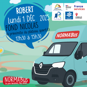 CAP Nord Martinique informe la population de la venue de NORMA'BUS au Robert le LUNDI 1ER DECEMBRE 2025.